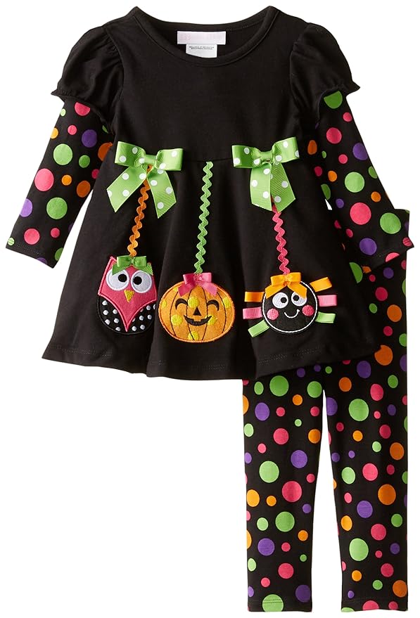 What adorable baby girl Halloween outfits! You can include baby in the Halloween fun with these cute outfits. They have cute leggings that will keep her legs warm, and sweet tops with fun Halloween themes. These baby Halloween outfits have adorable details such as cats, pumpkins, ghosts, and other characters of the season. Sweet polka dots, luscious ruffles, whimsical rick-rack, ribbons, and bold stripes make them feminine and fun! The striking colors of Halloween and autumn are here with the orange, black, green, and purple. Some of the outfits have tutus. So cute!