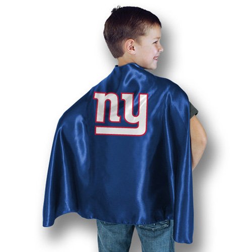 Here are super hero capes to dress up your precious children in a New York Giants super hero costume for Halloween. These super hero capes are available in two styles and from multiple online retailers.